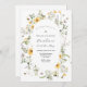 Convite de aniversário para as abelhas. Design apresenta flores silvestres amarelas e abelhas. Personalize com suas informações ou clique em "Clique para personalizar mais" para editar estilos de fonte, tamanho e cores.