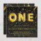 Convite Aniversário de Foto com Confetes Preto e Dourado d