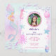 Este convite de aniversário temático "debaixo do mar" fofo e caprichoso apresenta um polvo, uma medusa, uma estrela-do-mar e um cavalo-marinho. É personalizável com uma foto da aniversariante especial! O verso do convite apresenta uma sereia, cardumes de peixes e um polvo fofo.
