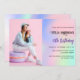 Um fundo holográfico rosa, roxo e verde menta. Personalize e adicione uma foto e detalhes da festa.