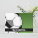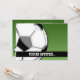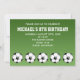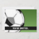 Modelo de convite de cartão de aniversário de futebol de desenho animado preto, branco e verde.
