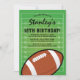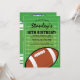 Marque um touchdown com o planejamento da sua festa! Nossos convites de festa de futebol americano apresentam um fundo verde gradiente vibrante, um campo de futebol detalhado e uma bola de futebol realista, juntamente com uma camiseta americana azul que pode ser personalizada com seu nome e idade. Levar o jogo para o próximo nível, esses convites também contam com um modelo de celebração de aniversário moderno que é fácil de personalizar. Faça da sua próxima festa de aniversário o evento esportivo da temporada com esses convites únicos e fáceis de personalizar.