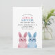Tema de coelhinho fofo para festa de aniversário de gêmeos com um coelho azul e um rosa usando óculos. VOCÊ PODE REMOVER OS ÓCULOS! Fundo com padrão xadrez.