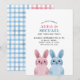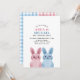 Convite Aniversário de gêmeos com coelhos azuis e rosas