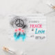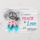 Também tem um bosque legal artístico e grunge criativo Hippie Gypsy Sign Symbol de Paz com algumas Flores de Margarida Rosa e Penas Azuis Turquesa desenhadas para este adorável bosque floral e de penas Qualquer idade de Boomer, Teen, a Crianças CONVITE *