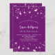 Um fundo roxo decorado com estrelas rosa e roxo. Personalize e adicione um nome e detalhes da parte.