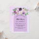 Um fundo violeta, lavanda, colorido d'água e uma armação de arco. Decorado com flores violetas e púrpuras de cor aquosa e verde. Personalize e adicione seu nome e detalhes da festa.