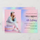 Um fundo holográfico rosa, roxo e verde de menta. Personalize e adicione uma foto e detalhes da festa.