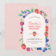 Convite temático "Berry First" com aguarela de frutas vermelhas coloridas.