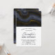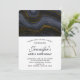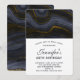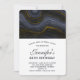 Um convite de aniversário com uma bela imagem de uma pedra de ágata abstrata escura. As cores giram em ondas. As cores principais são preto, cinza-azulado com uma fita dourada falsa que percorre o design. Moderno e trendy.