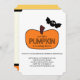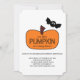 Convide convidados para a sua pequena festa de aniversário de outono com nossos adoráveis convites de festas de abóbora. Design apresenta ilustrações laranja de abóbora com "nossa abóbora está girando" em caracteres de caça verde e abóbora laranja. Personalize com seus detalhes de festa de aniversário usando os campos fornecidos.