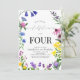 Este elegante convite de aniversário "nossa pequena flor selvagem" apresenta um fundo branco com flores silvestres em rosa, azul e amarelo. O verso apresenta um fundo verde claro com padrões brancos de bolinhas. Personalize para suas necessidades. Você pode encontrar mais produtos correspondentes na minha loja.