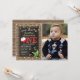 Convites de aniversário com tema de pesca para celebrar o primeiro aniversário do seu filho! Este convite apresenta um fundo de madeira rústica, uma foto da criança, uma peça central de quadro-negro, um peixe verde fofo, uma bóia de pesca e um modelo de celebração de aniversário moderno e fácil de personalizar.