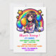 Uma anime bonita segurando balões com um arco-íris colorido atrás dela. Convites bonito para a festa de aniversário de uma garota. Este tema seria fofo para crianças mais novas ou pré-adolescentes.