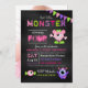 O nosso cartão com fotos de Convite de festas de quadro-negro, cor-de-rosa, Pequeno Monstro, adequado para qualquer idade. Crédito a Kristi W Design.