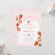 Celebre o primeiro ano do seu pequeno com este charmoso convite tema de laço coquete "Berry First"! Com um delicioso tema de morango, letra cursiva vermelha elegante e sutil toque de aquarela, este convite é perfeito para uma celebração de aniversário de primavera ou verão.