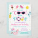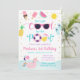 Este convite de aniversário para meninas apresenta ilustrações coloridas adoráveis de verão com sotaques falsos de folha de ouro.