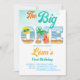 O convite de aniversário tropical de verão para o Big One surfing no oceano de surf tropicais é modelo de download instantâneo. Bom para os aniversários temidos da praia de verão.