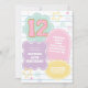 convite de 12 de aniversário do pastel varsity preppy patch.