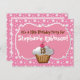 Cupcake fosco doce e saboroso, treze convite de aniversário. Algodão doce, cor-de-rosa e branco, com fundo de rolagem branco divertido e rico e bolo de xícara delicioso com cereja em cima! Personalize este convite de sobremesa de na moda com o seu nome e informações de festa. Pastelaria super-doce cozida com glacé branco, excelente para qualquer tipo de festa temática de cupcake.