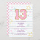pastel varsity preppy patch, convite para 13 de aniversário do notebook com doodles de notebook e checker de volta.