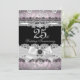 Convite de 25 de Prata e Rosa. Lace preto elegante e arco de pérolas prateadas. Por favor, note: todas as imagens planas!