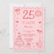 Convite Aniversário do 25 Vermelho Rosa Vermelho Quirky (E