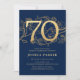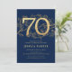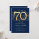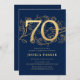 Convite de aniversário de 70 azul Elegante marinho. Design feminina moderna personalizável, com sotaques botânicos rosas e ouro brilhante falso. Simples cartão de convite floral perfeito para uma comemoração de um na moda. Personalize com seus próprios detalhes. Impressos convites Zazzle ou modelo de impressão digital instantânea para download.