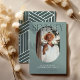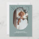 Convite de aniversário para 70 de na moda moderno. Design apresenta uma fotografia oval da aniversariante/rapaz, a elegante inscrição 'SÉTICA' com o nome das pessoas no script de assinatura no topo e um simples modelo de festa de aniversário que é fácil de personalizar com os seus próprios detalhes. As cores também podem ser alteradas para corresponder à decoração do seu próprio partido.