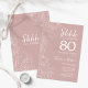 Um convite de aniversário de 80 de surpresa rosa e branco. A design feminina moderna apresenta sotaques botânicos e fontes de script de tipografia. O cartão de convite floral elegante é perfeito para uma festa surpresa na moda. Impressos convites Zazzle ou modelo de impressão digital instantânea para download.