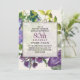 Plum roxo aquarela floral com folhas verdes e vinha no convite de festas de 80 de jardim de marfim/alabastro.