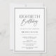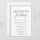 Este é um Convite de aniversário elegante, minimalista e moderno 5x7. É uma na moda simples e, tipografia e design baseada em script, em preto clássico e branco, para um aspecto chic e eterno. Entre em contato com o designer para obter informações sobre este design.