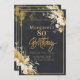 Convite Aniversário do 80 Modern Black & Dourado Floral Gl