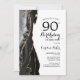 Convite de aniversário de 90 preto, branco e dourado. Elegante design moderno com aquarela agate marble geode background, faux glitter gold e typografia script font. Trendy convida o cartão perfeito para uma comemoração de dia das mulheres na moda. Impressos convites Zazzle ou modelo de impressão digital instantânea para download.