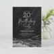 Convite de aniversário 20 preto e prateado. Elegante design moderno com aquarela agate marble geode background, faux glitter prata e tipografia. Trendy convida o cartão perfeito para uma comemoração de dia das mulheres na moda. Impressos convites Zazzle ou modelo de impressão digital instantânea para download.