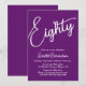 Simplesmente Moderno Convite de aniversário de outono Roxo Personalize este elegante convite de aniversário Roxo de outono com o nome da pessoa que celebra um dia muito especial em sua vida e personalize todos os detalhes da celebração da festa de aniversário. Um aniversário de 80 é um marco especial para celebrar. Marque a ocasião criando uma festa e enviando convites para todas as pessoas especiais em sua vida. Compre nossa loja por presentes que você pode personalizar com este mesmo design elegante em presentes de aniversário e decorações de festas de aniversário.