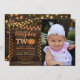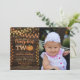 Este convite para a colheita do outono apressado apresenta folhas de outono, luzes de cordas e abóboras brilhantes sobre um fundo de madeira cônica. Adicione a sua foto para esse toque pessoal. Perfeito em convidar convidados para a festa de aniversário do seu pequeno. Fácil de personalizar com opções personalizadas.