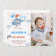 Convite Aniversário do avião Invoca Cinza Azul com foto