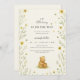 Adicione um toque doce e acolhedor à sua celebração de bebês com este adorável fundo de convite de urso de mel. Apresentando uma ilustração aquosa de cor macia de um bebê urso segurando um pote de mel, rodeado por flores silvestres amarelas e abelhas buzinas. Esta design suave e neutra é ideal para chás de fraldas, convites para o primeiro aniversário, posters de marcos bebês, ou decoração de berçários. Uma escolha perfeita para temas de bebês inspirados na natureza ou na primavera. Excelente para uso impresso ou digital.