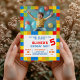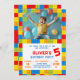 Ignore a diversão com este Convite de Aniversário do Bloco de Construção de Crianças! Mostrando uma fronteira vibrante de blocos, balões alegres e uma criança encantada pulando com alegria, esta design é ideal para uma festa criativa e aventureira. Perfeito para uma comemoração temática construtora de blocos, é totalmente personalizável tornar seu dia especial inesquecível!