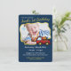 Caminhão de bombeiros Chubby e convite de aniversário decorativo para crianças. Personalize com sua própria foto e altere o texto conforme necessário.