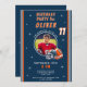 Foto de Cartoon de Captura de Futebol, Convite de Aniversário. Convidado para festas de aniversário de futebol divertida e moderna. Apresentando uma ilustração ousada de desenho animado de um futebol e capacete. Apresentando uma ilustração vibrante de um clássico futebol vermelho e capacete elegante em cor de laranja e cinza contra um legal fundo azul com estrelas brancas, este convite é perfeito para qualquer garoto ou garota que ama o esporte. Totalmente personalizável - adicione os detalhes do evento e a foto.