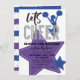 Vamos Cheer! Convite de aniversário de líder de torcida em roxo, azul e prata brilhando e preto.
