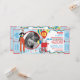 Malabarismo e cabine de algodão doce Stilt Walker com balões circo ou cartão-convite de aniversário de tema de carnaval com fotografia e bilhetes de rifle ao lado. Apenas perfure os lados para uma fácil rasga! As cores são azuis, amarelo, vermelho e branco.