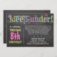 Letras de cor clara em um fundo falso-chalkboard fazem com que este convite de festas de olho pegue e se divirta! Personalize com os detalhes de sua parte usando o formulário modelo. Use o recurso PERSONALIZAR para alterar a fonte, o layout e as cores.