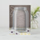 Convites de festas russos e bonitos do Aniversário do País do Sul (personalizados para qualquer ano) apresentando uma ilustração de um jarro de mason com fio amarrado ao redor do pescoço, margaridas brancas e roxas deitadas no pé do pote, um mesa de gingham branco e amarelo, sobre um fundo castanho de vintagem. Seus detalhes de celebração estão contidos no vidro, para onde, se seu texto se estender ao sombreamento do vidro, o texto será sombreado também (recomendável manter as linhas curtas).