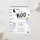 Uma festa de Dia das Bruxas não tão assustadora! Pastel Iridescente O Nosso Pequeno Fantasma de Boo Aniversário de Halloween com fundo preto e branco.