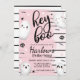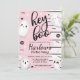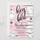 Uma festa de halloween não tão assustadora! O Pastel rosa Ei Boo Ghost Halloween convite de aniversário com fundo preto e branco.