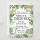 Convite para aniversário de 3 Rex Dinossauros, em forma de água verde