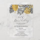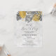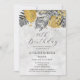 O chá de panela de palma tropical elegante e chic apresenta um arranjo superior de folhas de palma desenhadas por linha preta e folhagem dourada. O título de aniversário é escrito em um roteiro moderno e aberto. Uma lavagem aquosa de cinza macia e romântica puxa a design na frente e atrás. Muito fácil de personalizar. Este item faz parte da coleção Elegante de Palma Tropical. A estética do eterno torna isso apropriado para qualquer época do ano.